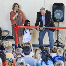 On September 20, 2022, the Abbotsford Board of Education hosted the official grand opening event of Irene Kelleher Totí:ltawtxw, the newest elementary school in the Abbotsford School District. Over 100 guests - including school trustees, government officials, district staff, students, and various community members - were in attendance to commemorate this exciting day, learn more about the building process and the history of the school's namesake, Irene Kelleher.