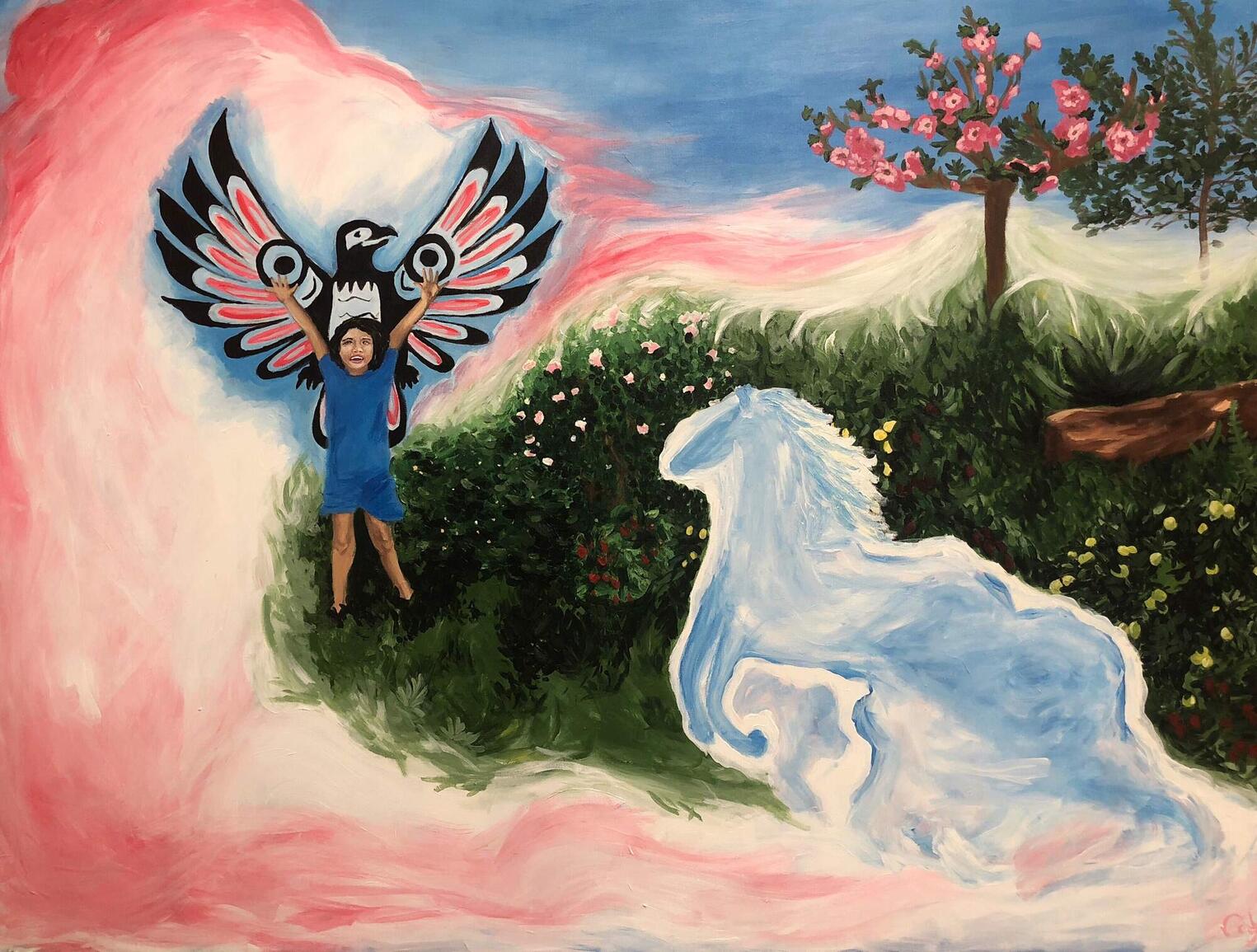 The Art Activism Project - titled Lex̱éywa, meaning “Torch” in Halq’eméylem - calls us to consider the history and impact of residential schools on a national level, as well as on a local scale. This art project visually narrates the life story of Bea Silver; a prominent Elder, educator, leader, and residential school survivor. Twenty large-scale paintings have been paired with audio recordings that relay Bea Silver's story chronologically, uncovering an individual experience that speaks to the lasting impact of residential schools, as well as universal truths, struggles and ultimately, the resilience of one exceptionally strong survivor of this history we all share.
